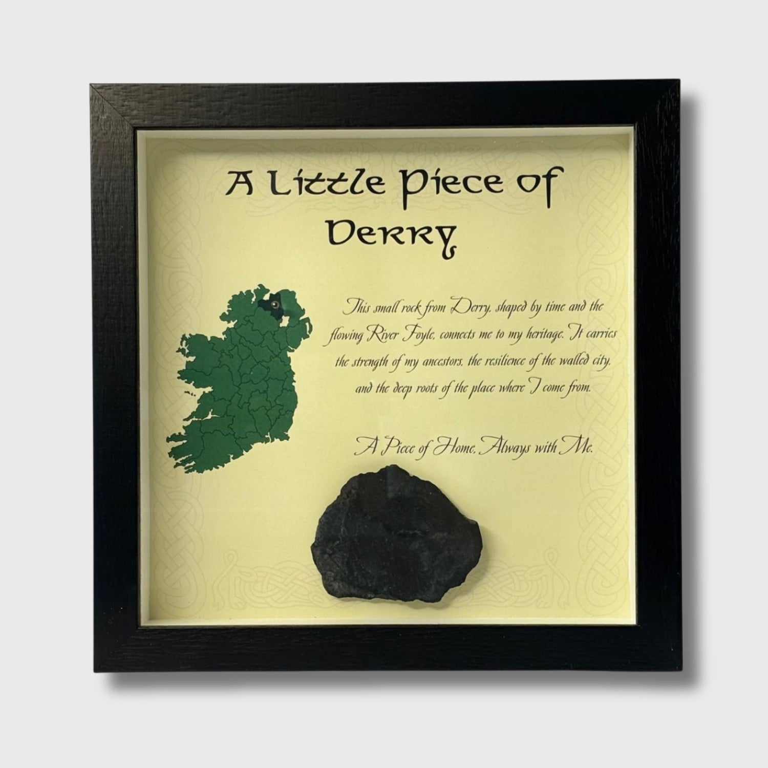 Pebble & Paddy began with a simple stone picked up on a walk in Blarney, Co. Cork. Kevin wanted to send his sister in New York something real — a small piece of Ireland to ease her homesickness. He framed the stone with a short verse, and the gift meant more to her than he ever imagined.